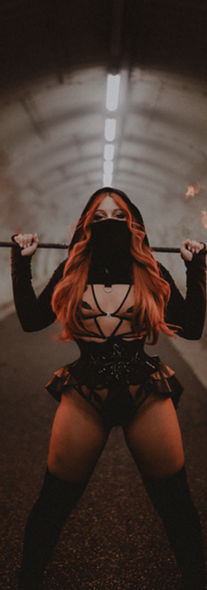 With a background in contemporary dance and circus, her versatility see's a vast clientele, creating both intimate and large shows at festivals, weddings, arenas, private parties, corporate events, nightclubs and caberets.